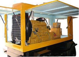绵竹柴油发电机组/移动柴油发电机组设计独具创新,机动性高、重心低、制动安全、制造精良、外形美观。 绵竹拖车车架采用槽梁焊接成框架结构,节点选择合理、强度高、刚性好;同时装有钢板弹簧悬架结构;拖车采用高度可调节插销式牵引架,适用于各种高度牵引车;采用圆形钢管焊接直通式车轴,结构紧凑,安全可靠;车架四角设有机械式支撑装置,配备惯性行车制动、驻车制动和脱离应急制动,确保机组在各种状况下的安全;车架前端设有支撑轮,具备承受机组垂直载荷的功能的同时还具备导向功能;整车配备转向和刹车指示灯,同时装有尾灯标准插头